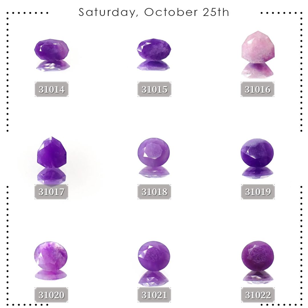 ▶ 不透明な宝石ゆえに、カボションルースで見かけることが多いスギライト。鉄分の含有量が少なくなるにつれ、深い紫から明るいピンクがかった色合いになります。その色合い自体の流通量が少なく、ファセットカットされたルースは他の宝石にはない個性的な魅力を放ちます。