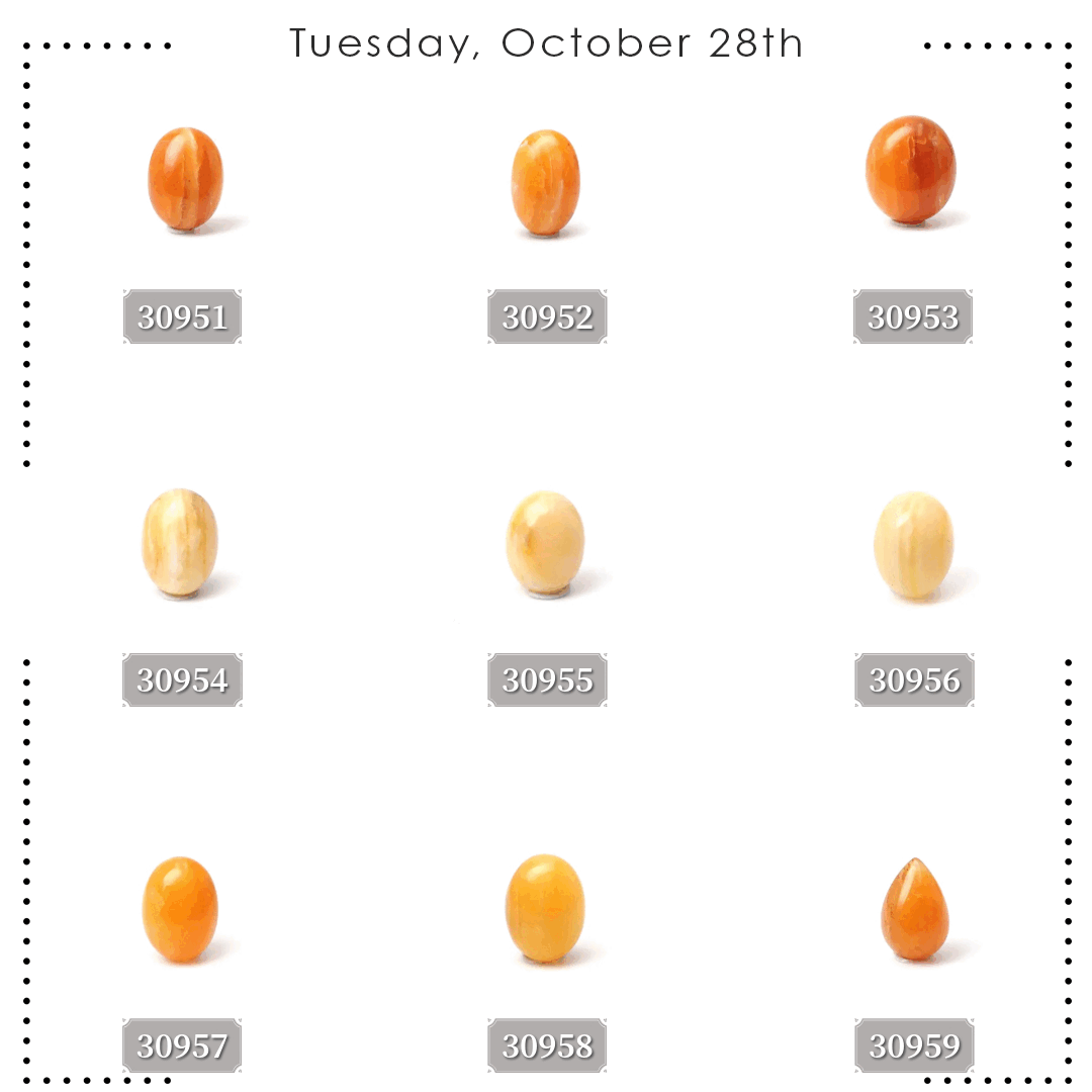 ▶ 今年手に入れておきたいオパールのひとつはこの北海道オパールでしょう。もともと綺麗なオレンジ色をしているものが多いですが、UVライトをあてた時の強蛍光は必見!北海道石のルースと同じ原石から加工したカボションです。
