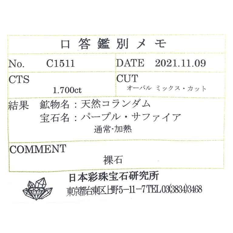 鑑別書がついているものは非加熱検査済み、鑑別所なしのもので非加熱の文字を付けているものは、仕入れ元情報によるものです。
