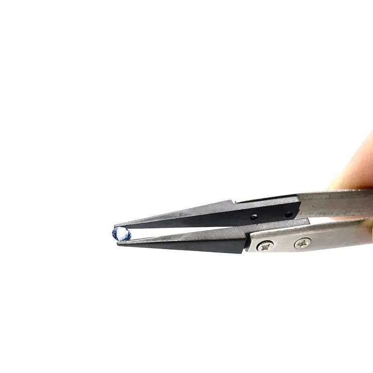 Dmasterなどのソフトチップピンセットとの違いは、先端が細いのとソフトチップより硬めなので、小さなメレーから約3カラットまでのダイヤモンドや色石などの様々な作業に最適。