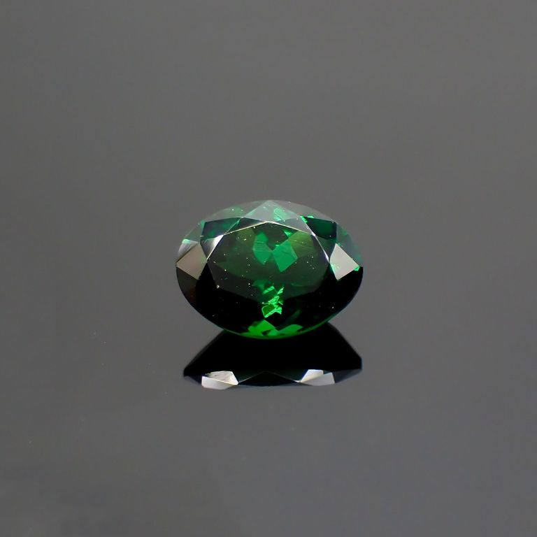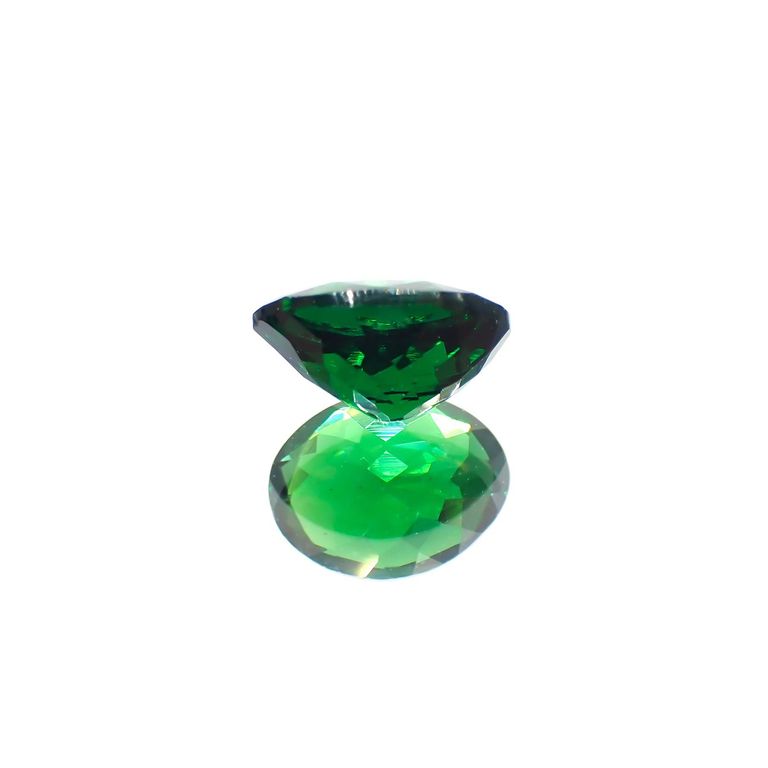 デマントイドガーネットは分散度や屈折率が非常に高く、素晴らしいファイアを生み出します。ツァボライトはデマントイドのようなファイアは出ないものの、クロム発色ゆえの素晴らしい彩度に加え、バナジウムによる明るさを持った輝き誇ります。