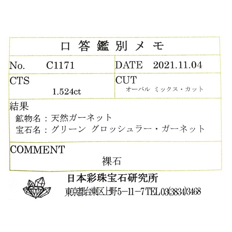 ツァボライト(宝石名グリーン グロッシュラー・ガーネット) タンザニア産 ソ付(彩珠) 1.524ct / 8.1x6.2mm前後 [210310348]