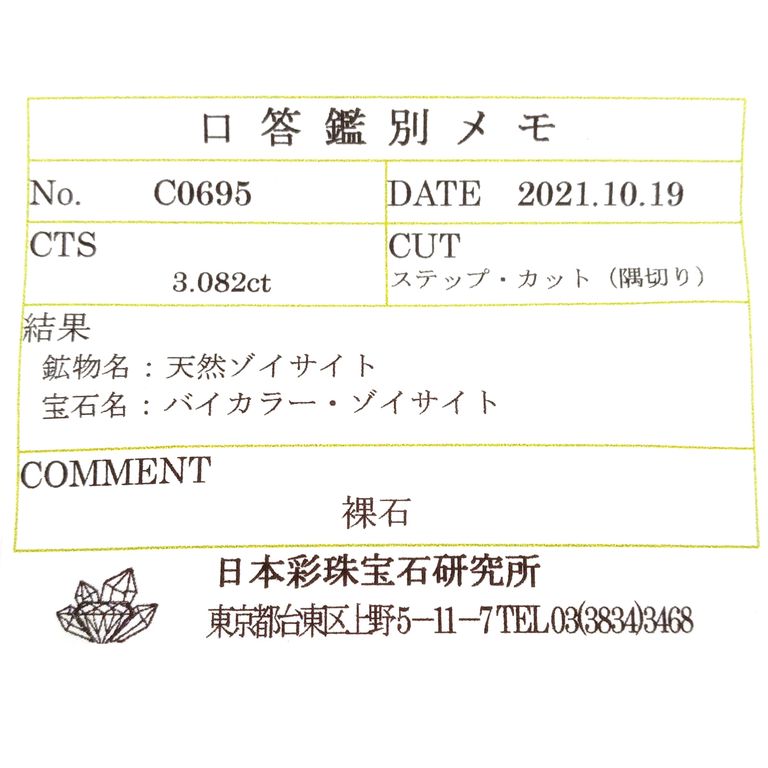 ゾイサイト(タンザナイト)は基本的に鑑別機関において加熱の過程を特定することが困難であり、非加熱検査ができない石種です。非加熱の文字を付けているものは、仕入れ元情報によるものです。