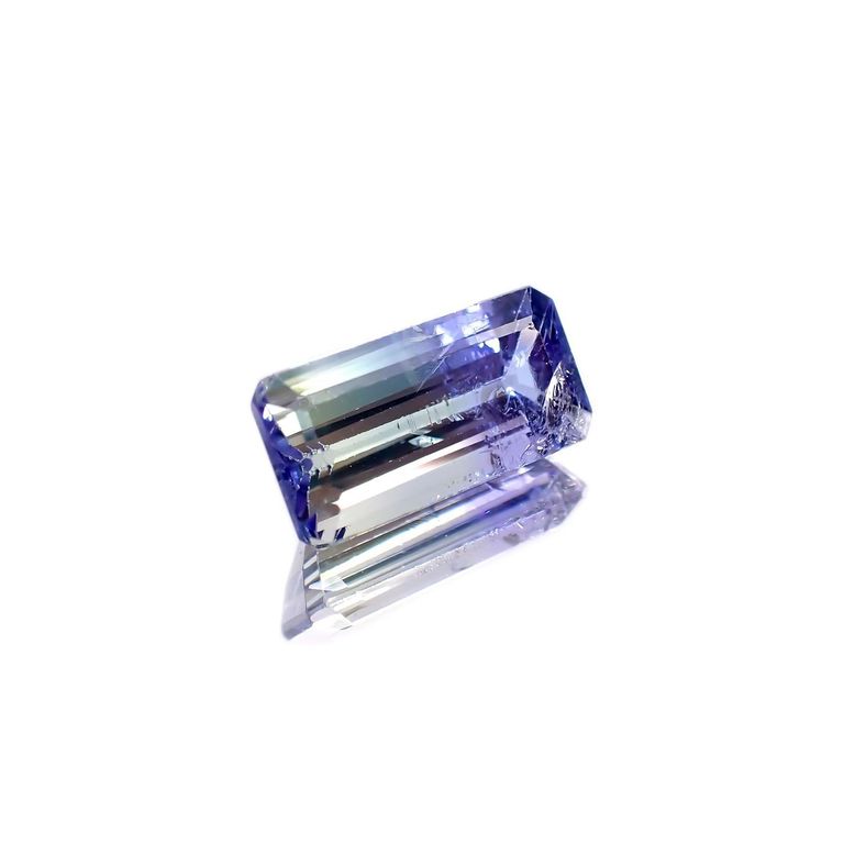 一般的にブルーのゾイサイト(タンザナイト)は加熱が施されていることの多い宝石です。もともと含まれていたバナジウムが加熱されることによってブルーの色が顕著に発現するようになるという特性を生かした手法で、褐色がかった結晶を加熱することで美しいバイオレットからブルーに変わります。