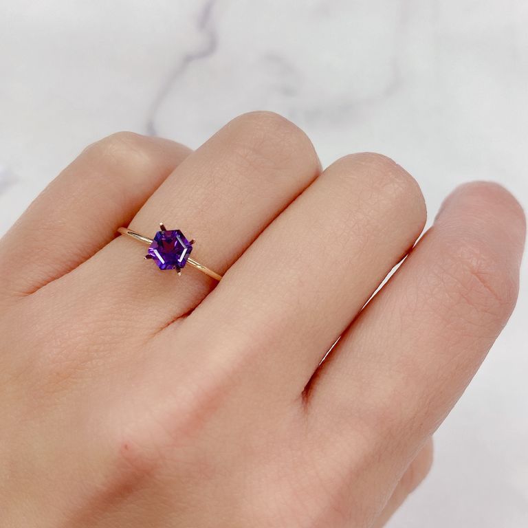 アメジストは身につける人に気品と優雅さを与えてくれると言います。「酒に酔わない」というギリシャ語の「amethistos」が宝石名の由来と言われ、古代よりその紫色は宗教的、霊的に権威の高い色とされ大切に扱われてきたといいます。アメジストには様々な種類が存在しますが、一般的に濃く美しい紫色で濁りがなく透明感なものが高品質とされます。