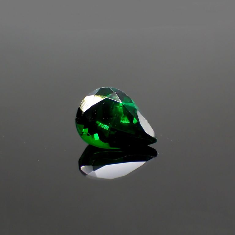 デマントイドガーネットは分散度や屈折率が非常に高く、素晴らしいファイアを生み出します。ツァボライトはデマントイドのようなファイアは出ないものの、クロム発色ゆえの素晴らしい彩度に加え、バナジウムによる明るさを持った輝き誇ります。