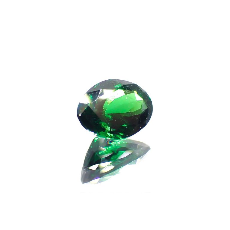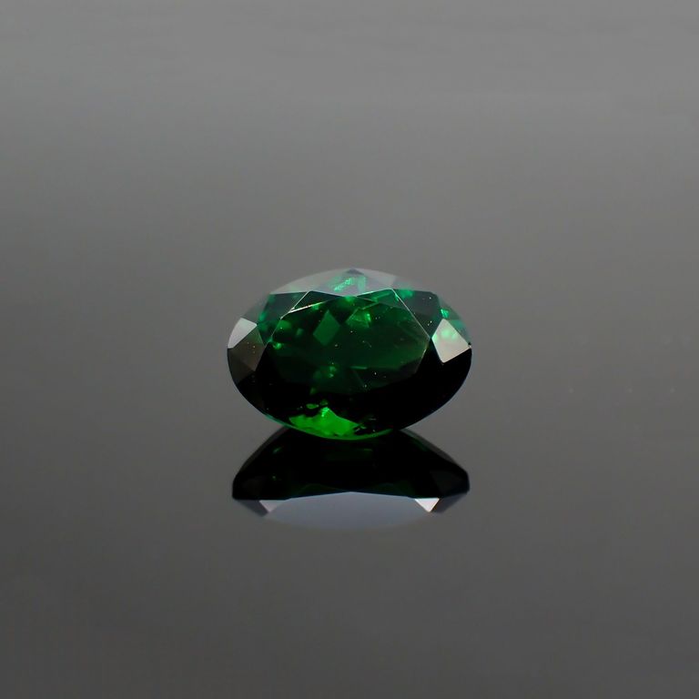 デマントイドガーネットは分散度や屈折率が非常に高く、素晴らしいファイアを生み出します。ツァボライトはデマントイドのようなファイアは出ないものの、クロム発色ゆえの素晴らしい彩度に加え、バナジウムによる明るさを持った輝き誇ります。