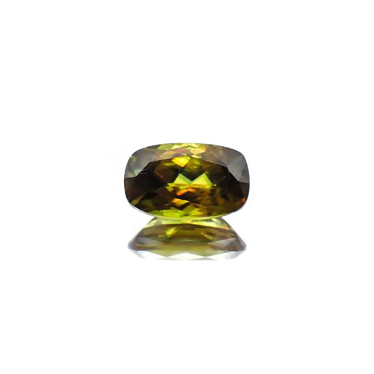 褐色から鮮やかなグリーンまでの色幅があります。クロムが多く含まれると鮮やかなグリーンのクロム・スフェーン、バナジウムが多いとゴールデンやイエローグリーン、オレンジのバナジウム・スフェーンになります。