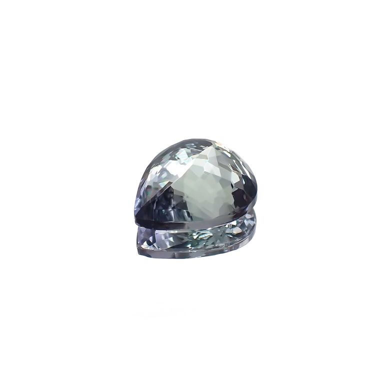一般的にブルーのゾイサイト(タンザナイト)は加熱が施されていることの多い宝石です。もともと含まれていたバナジウムが加熱されることによってブルーの色が顕著に発現するようになるという特性を生かした手法で、褐色がかった結晶を加熱することで美しいバイオレットからブルーに変わります。