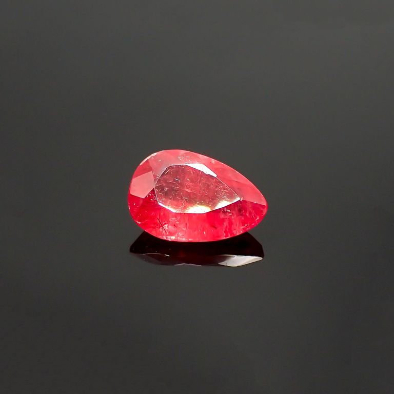 さらに硬度が5.5-6.5で少し柔らかく、より宝石質に近づくほど表面に傷がつきやすいという難点があります。劈開性もあるためファセットカットの難しい宝石ですが、やわらかな質感が現れた透明度の高い美しい赤色は、他に類を見ない魅力的な宝石としてコレクター人気の高い石種です。