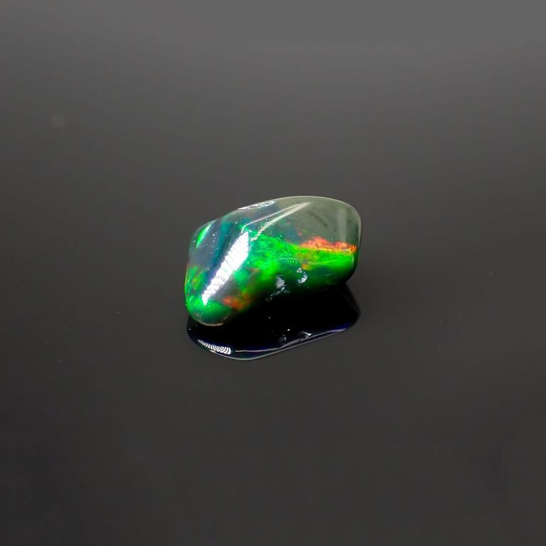 エチオピア産のプレシャスオパールで、虹のように様々な色が浮かびあがる「遊色効果/ play of color」が美しい宝石です。見る角度や光のあたり方や強さ、室内・野外などでも、全く別の表情をみせてくれます。