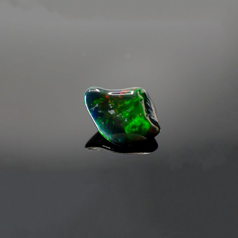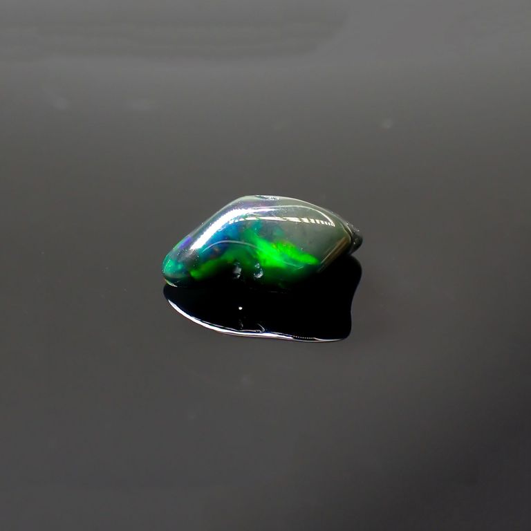 ブラックオパールとは一般的にオーストラリア産のオパールに見られます。不透明な濃灰色から黒色の地色に、美しい遊色効果(プレーオブカラー)浮かび、オパールの中でも希少種として扱われているカラーです。