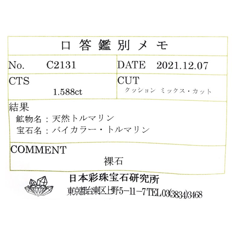 鑑別機関が宝石を鑑別した際に発行する簡易的な鑑別結果のことです。鑑別書のような冊子ではなく、小袋に鉱物名、宝石名、重さ、サイズ、開示コメントが記されているものになります。正しい宝石という鑑別機関のお墨付きが欲しい方に向いています。鑑別書と比べ、比較的費用は抑えられます。