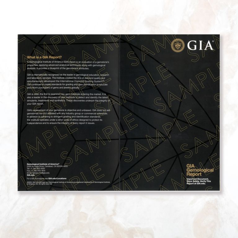 └Gemological Institute of America/ジェモロジカル・インスティテュート・オブ・アメリカ。略称GIA(ジーアイエー)。ダイヤモンド、カラーストーン、真珠の鑑別において最も高い評価を受けている世界最大規模の非営利宝石学研究及び教育組織。