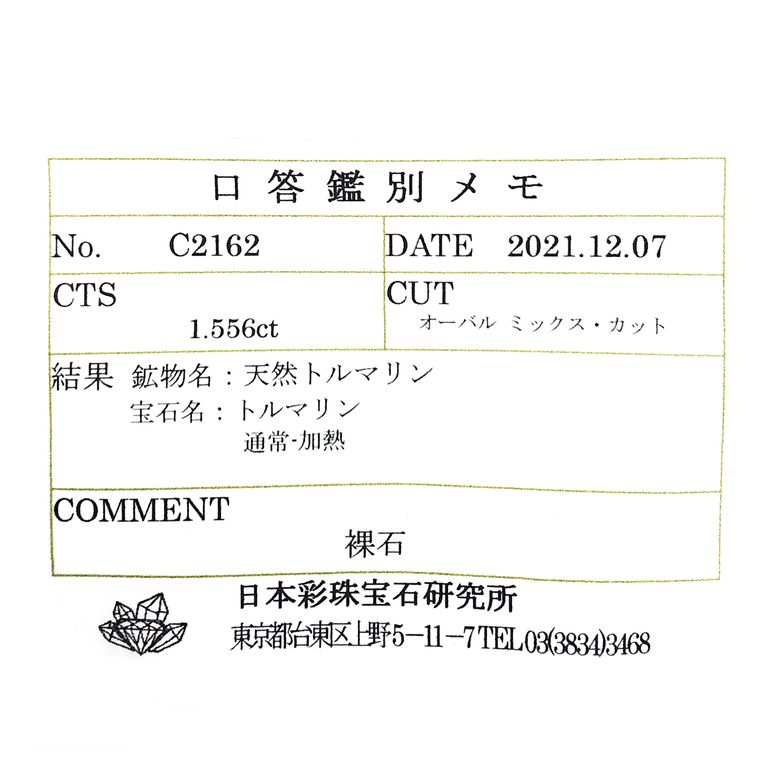 AGL加盟団体においてはパライバトルマリンは鑑別書+分析報告書の添付が必要になり高額となるため、口答鑑別(ソーティング)でCu(銅)とMn(マンガン)の数値を記載していただける一般社団法人宝石貴金属協会に依頼しております。