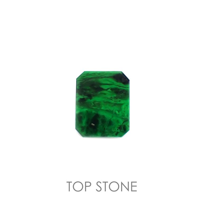 美しく濃いグリーンに黒や白の模様が特徴的で、非常に神秘的な宝石です。