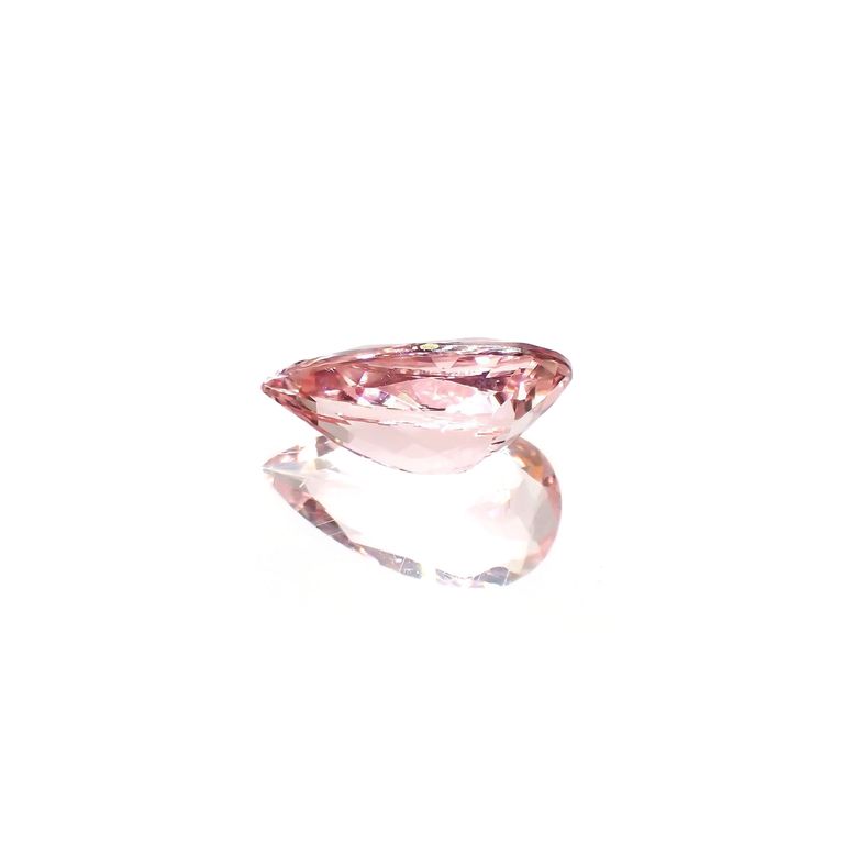 多色性という性質も持ち合わせるため、カットの角度によってその色の発現の仕方が変わってきます。小さな結晶などはとくに淡い色合いのものが多く、正面から見て高発色になるよう仕上げられるルースは、結晶の質だけでなく、職人の高い技術もともに求められます。ピンクからサーモンカラーの色の濃いモルガナイトは非常に希少です。