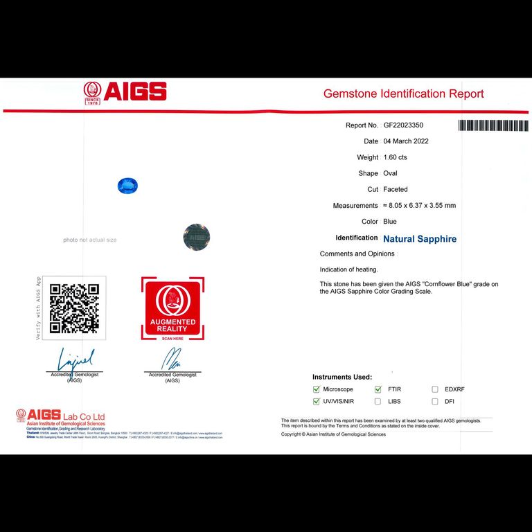 【鑑別書】 AIGS(Asian Institute of Gemological Sciences)