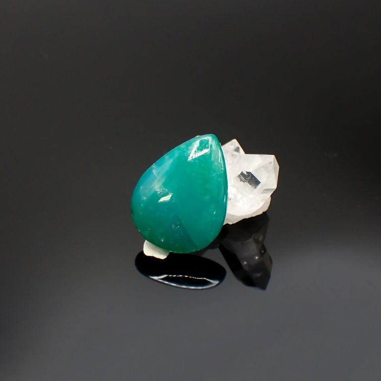 アメリカのアリゾナ州など、限られた地域でしか産出されないレアストーンで、その中でもレイマイン鉱山で採れるジェムシリカはその鮮やかな青緑色や産出量の少なさから、特に希少な宝石とされています。