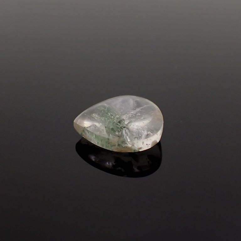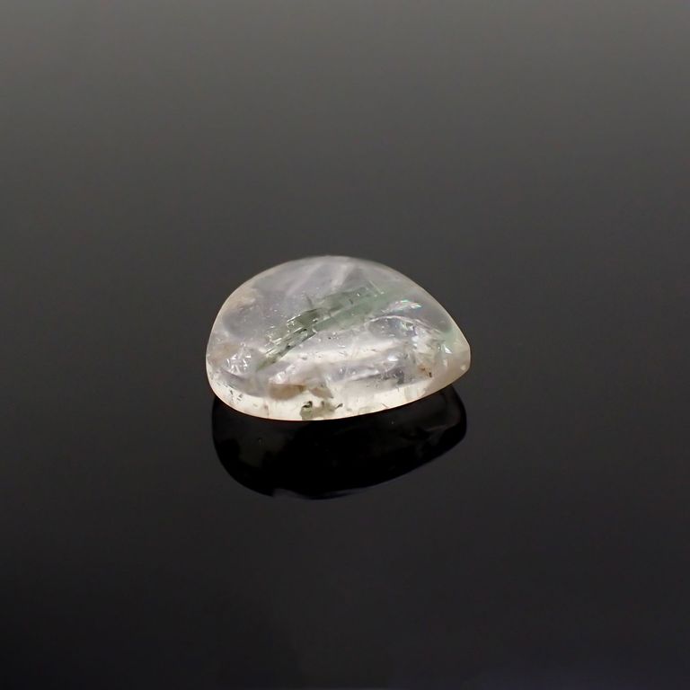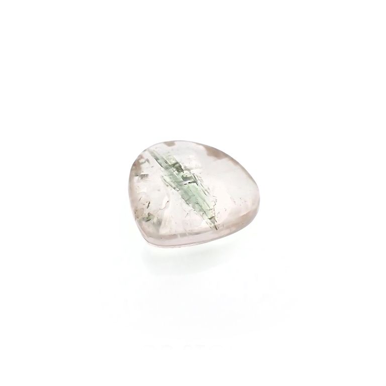 クォーツ(水晶)の中に、グリーントルマリンの柱状結晶を含んだルースです。不透明な母岩の共生ではなく、クリアな水晶の中にくっきりと浮かぶグリーントルマリン。このトルマリン部分の透明度も素晴らしく、どの角度からも標本のような美しい姿を楽しむことができます。