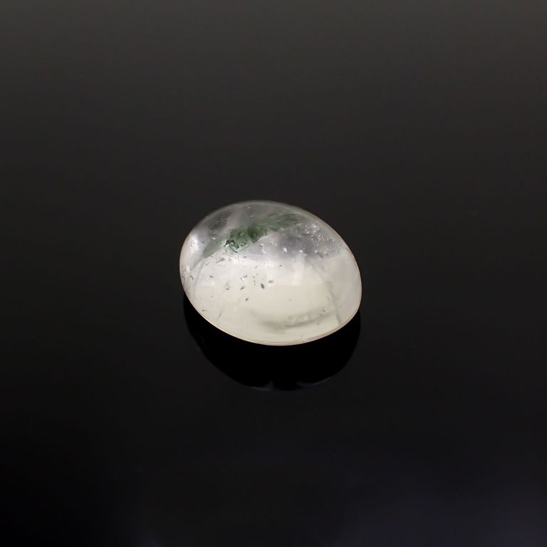 クォーツ(水晶)の中に、グリーントルマリンの柱状結晶を含んだルースです。不透明な母岩の共生ではなく、クリアな水晶の中にくっきりと浮かぶグリーントルマリン。このトルマリン部分の透明度も素晴らしく、どの角度からも標本のような美しい姿を楽しむことができます。