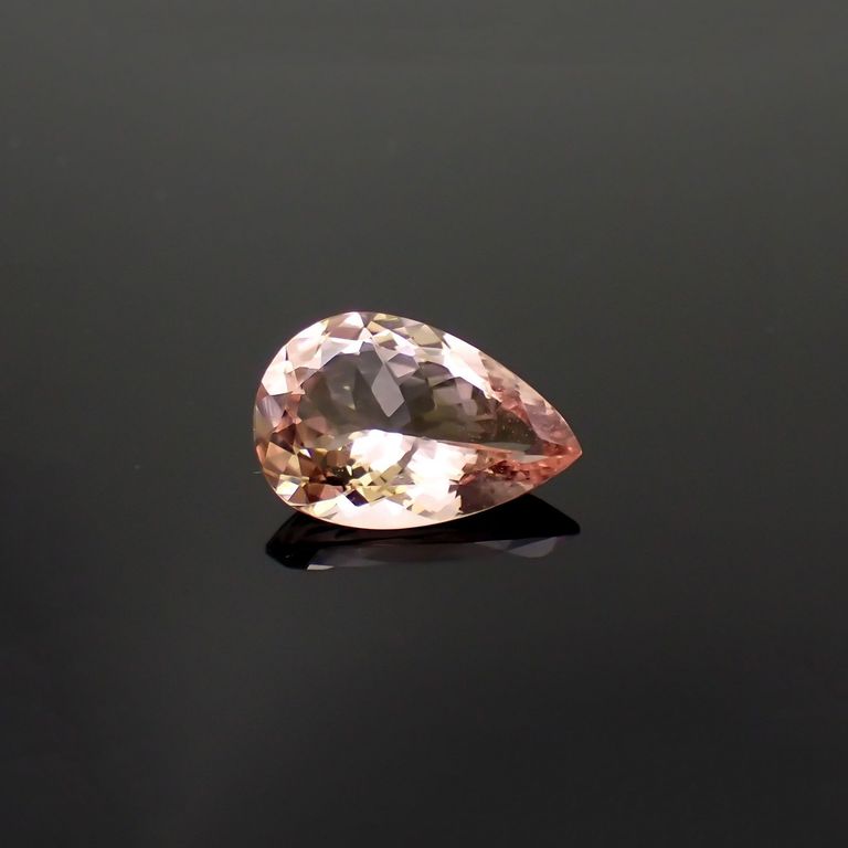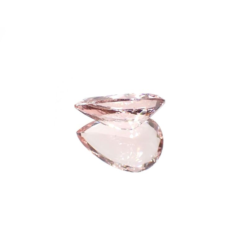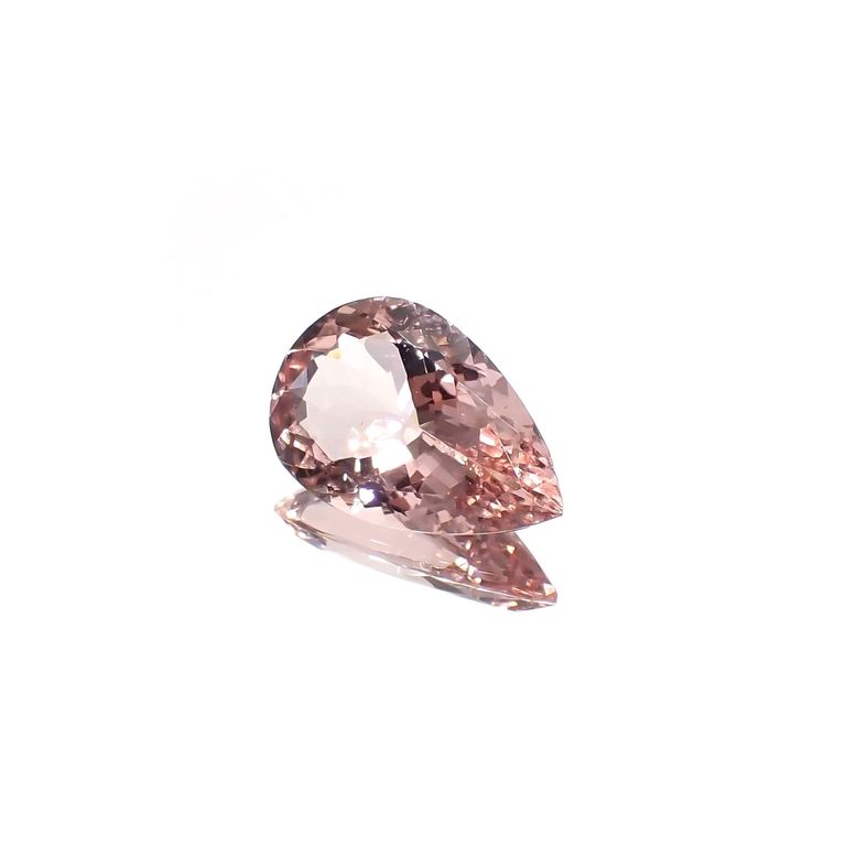 多色性という性質も持ち合わせるため、カットの角度によってその色の発現の仕方が変わってきます。小さな結晶などはとくに淡い色合いのものが多く、正面から見て高発色になるよう仕上げられるルースは、結晶の質だけでなく、職人の高い技術もともに求められます。ピンクからサーモンカラーの色の濃いモルガナイトは非常に希少です。