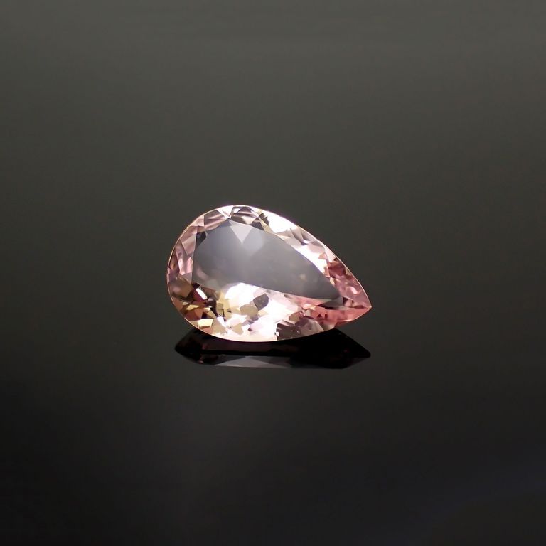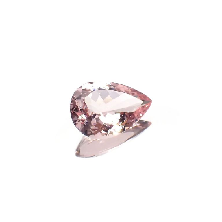 多色性という性質も持ち合わせるため、カットの角度によってその色の発現の仕方が変わってきます。小さな結晶などはとくに淡い色合いのものが多く、正面から見て高発色になるよう仕上げられるルースは、結晶の質だけでなく、職人の高い技術もともに求められます。ピンクからサーモンカラーの色の濃いモルガナイトは非常に希少です。