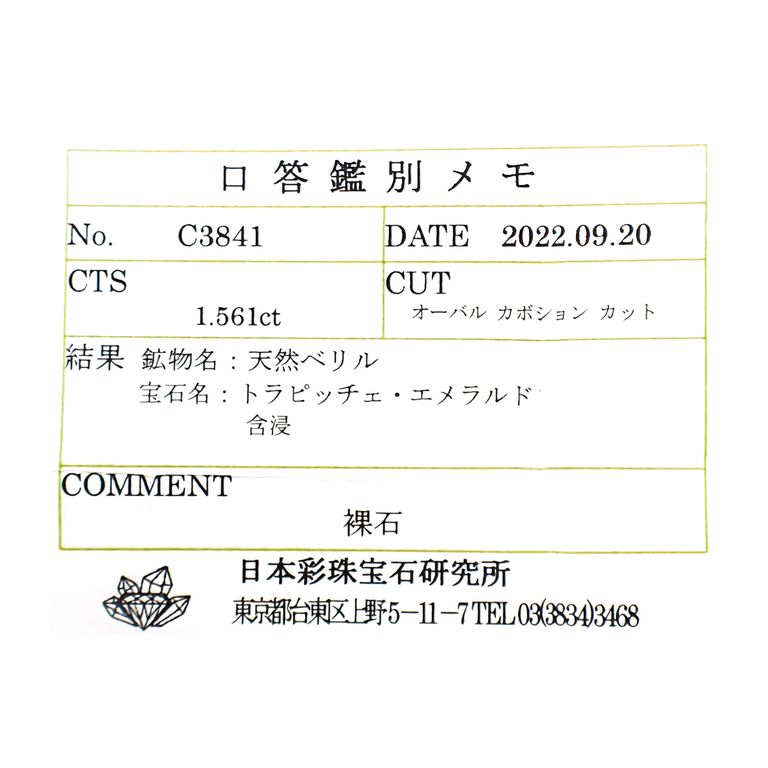 鑑別機関が宝石を鑑別した際に発行する簡易的な鑑別結果のことです。鑑別書のような冊子ではなく、小袋に鉱物名、宝石名、重さ、サイズ、開示コメントが記されているものになります。正しい宝石という鑑別機関のお墨付きが欲しい方に向いています。鑑別書と比べ、比較的費用は抑えられます。