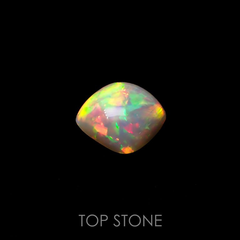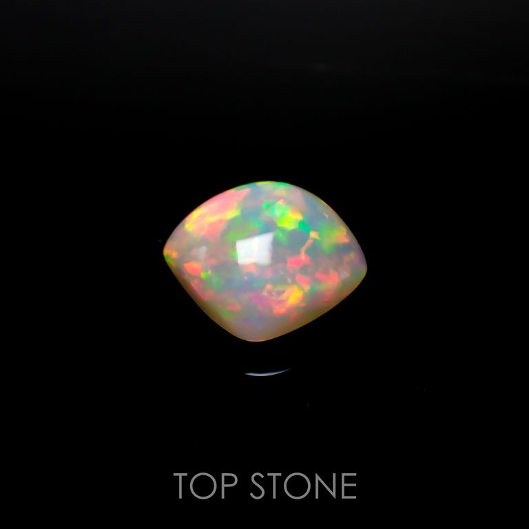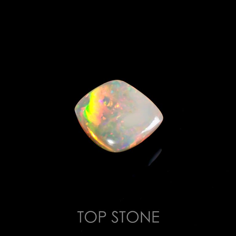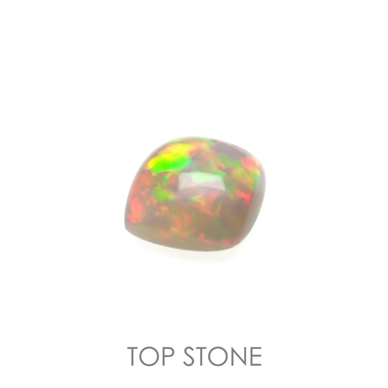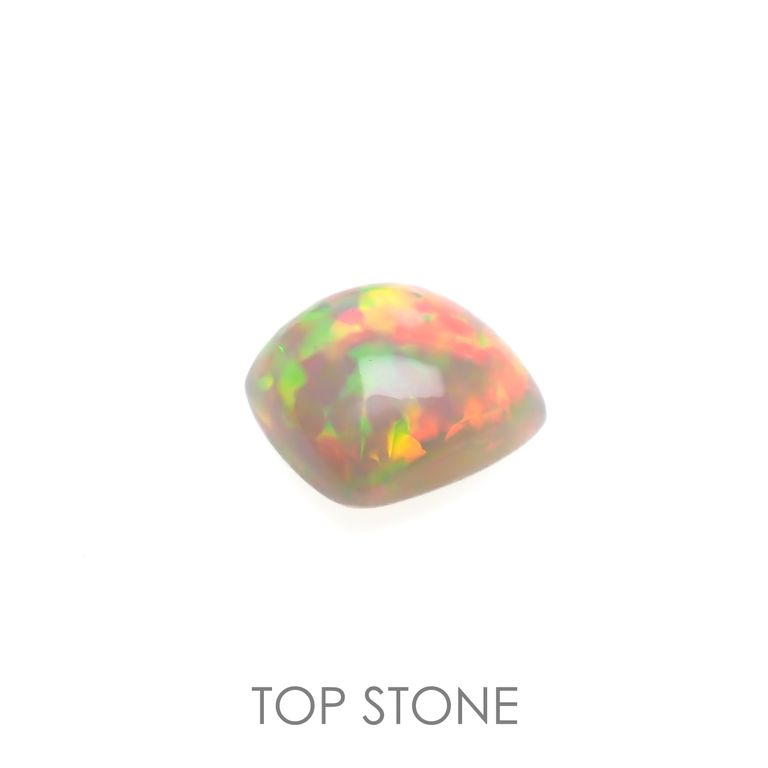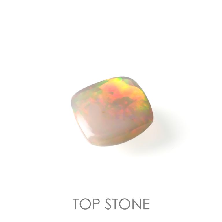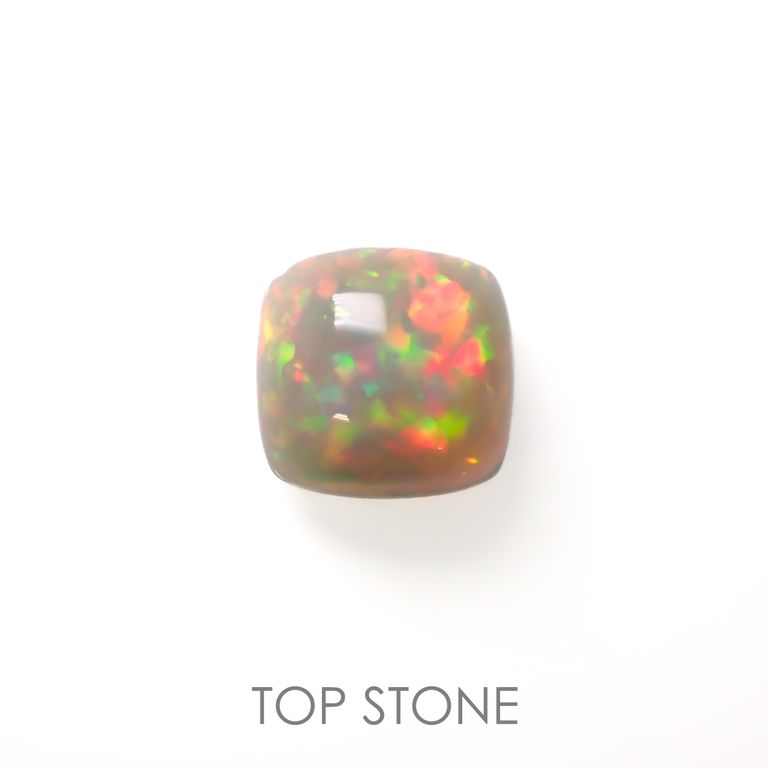 オパールの遊色効果は、オパールの成分である珪酸と水の粒子がきちんとそろっていることが条件になります。さらに、その粒子の大きさによって現れる光の色合いが変わり、一番小さな粒子が紫、次いで青→緑→黄→オレンジ、そして一番大きなものが赤だそうです。