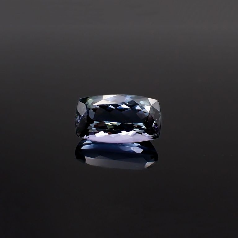 タンザナイトはゾイサイトにバナジウムが含まれたもので、バナジウムが多いとブルー寄りに、そこにクロムが含まれるとバイオレット系に発色します。クロムが含まれていてもバナジウムが少ないとグリーンになるようです。チタンが加わるとイエローにも発色します。