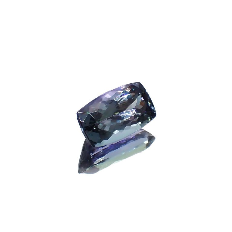 一般的にブルーのゾイサイト(タンザナイト)は加熱が施されていることの多い宝石です。もともと含まれていたバナジウムが加熱されることによってブルーの色が顕著に発現するようになるという特性を生かした手法で、褐色がかった結晶を加熱することで美しいバイオレットからブルーに変わります。
