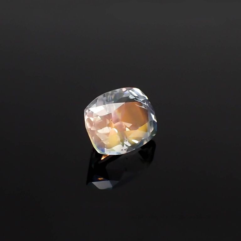 白色やカラーレスの結晶に、見る角度や光加減などによってオーロラのような光(シラー)が浮かび上がる神秘的な宝石です。ブルーをはじめ、イエロー、ピンク、オレンジ、グリーンなどのまさに虹色といった様々な色のシラーを楽しめます。