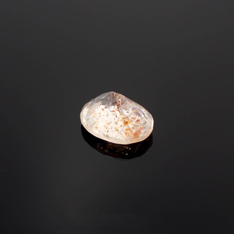 クリアな地色の部分は、フェルドスパーグループの中のオリゴクレースがベース。オリゴクレースはアルバイトとアンデシンの中間に属し、カラーレスやイエロー、ライトグリーンがあります。イリュージョンサンストーンの地色にバリエーションがあるのはこのためです。