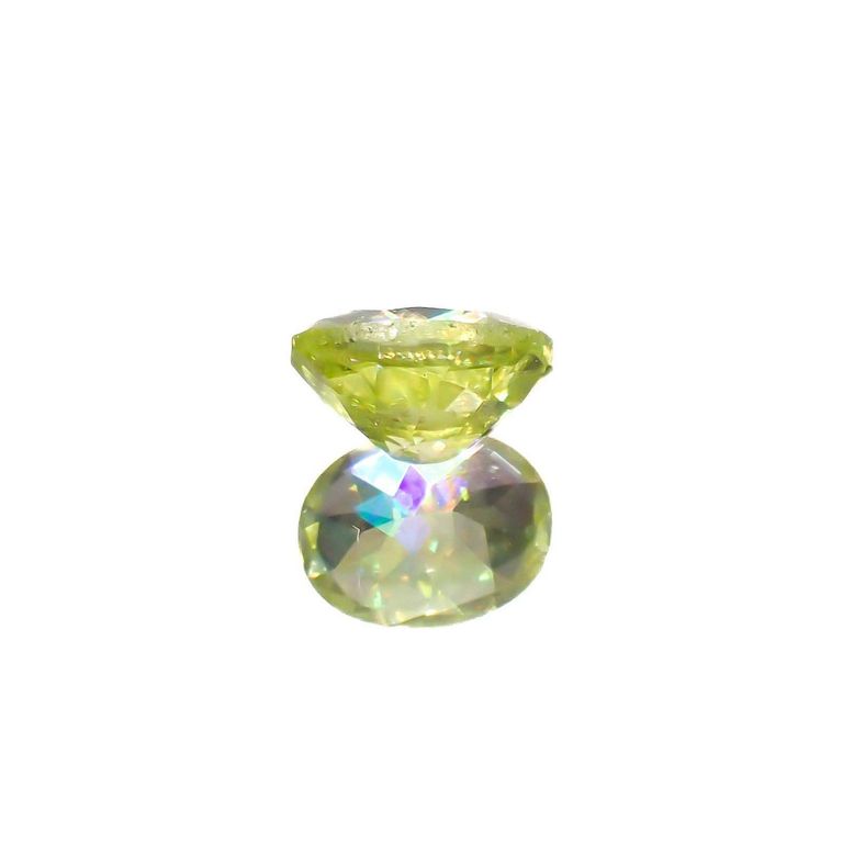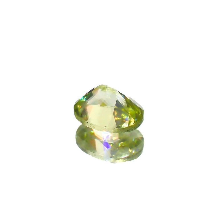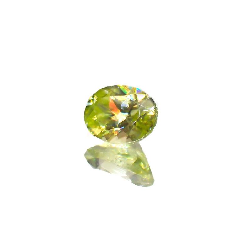 スフェーンは特に、このファイアが強く現れる宝石として知られています。光の分散率がダイヤモンドよりも大きく、また複屈折も大きいため、透明度の高いスフェーンのファセットカットはダイヤモンド以上の輝きを放つのです。