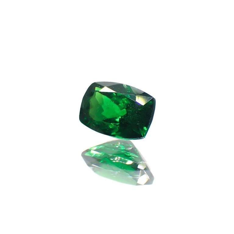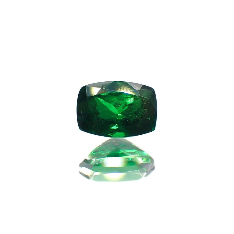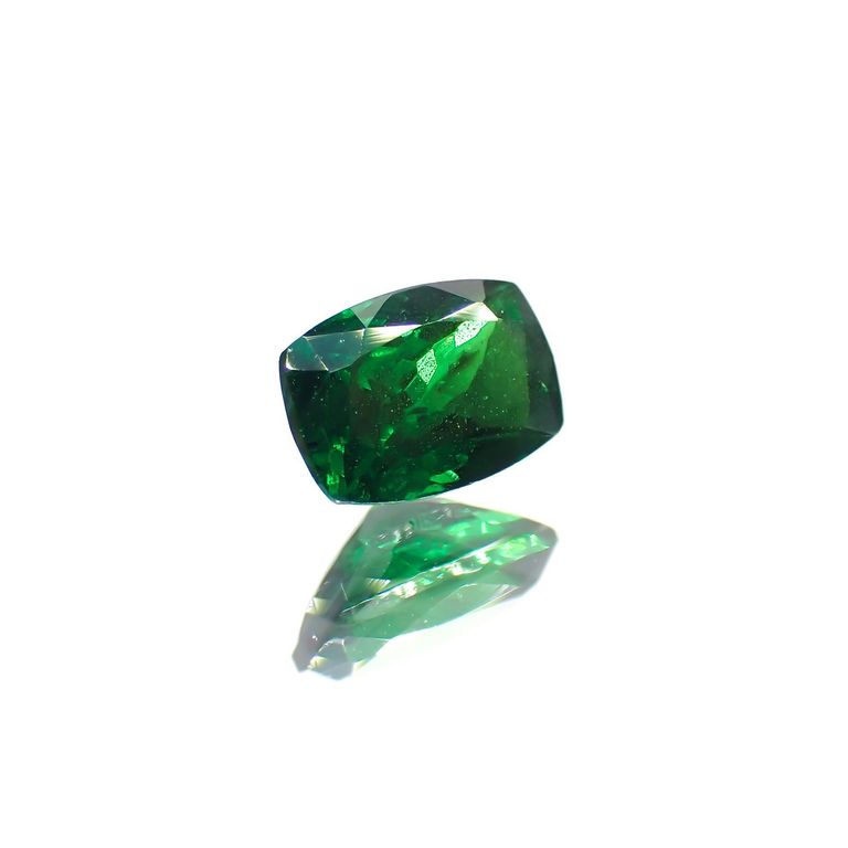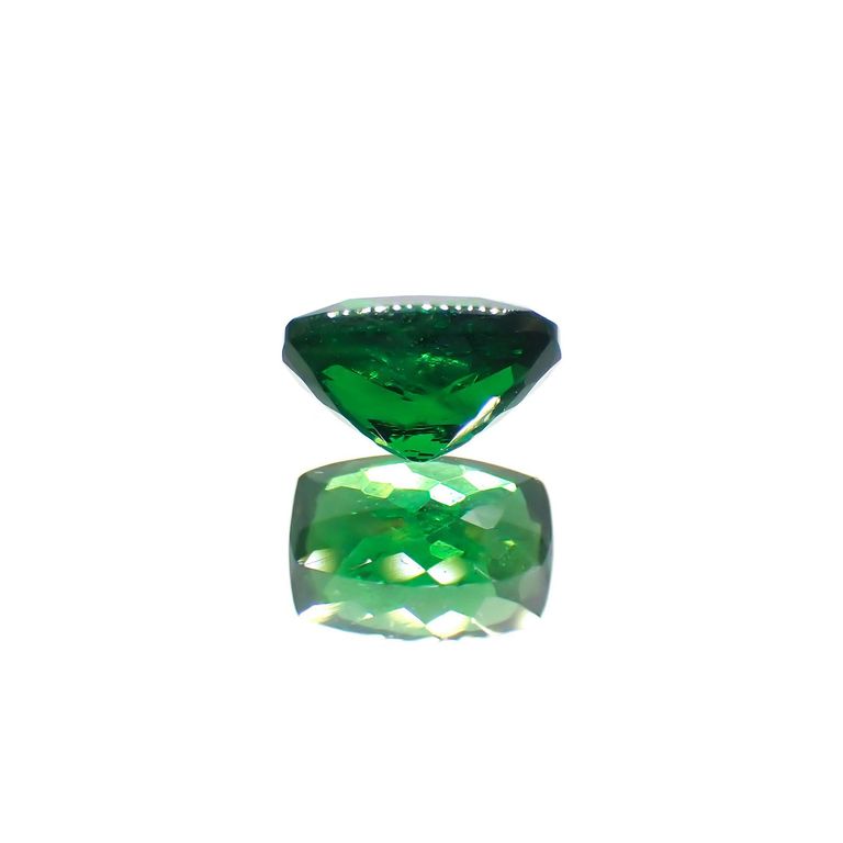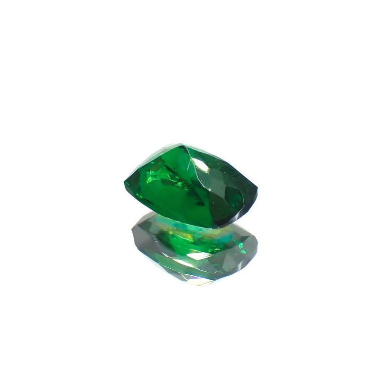 デマントイドガーネットは分散度や屈折率が非常に高く、素晴らしいファイアを生み出します。ツァボライトはデマントイドのようなファイアは出ないものの、クロム発色ゆえの素晴らしい彩度に加え、バナジウムによる明るさを持った輝き誇ります。