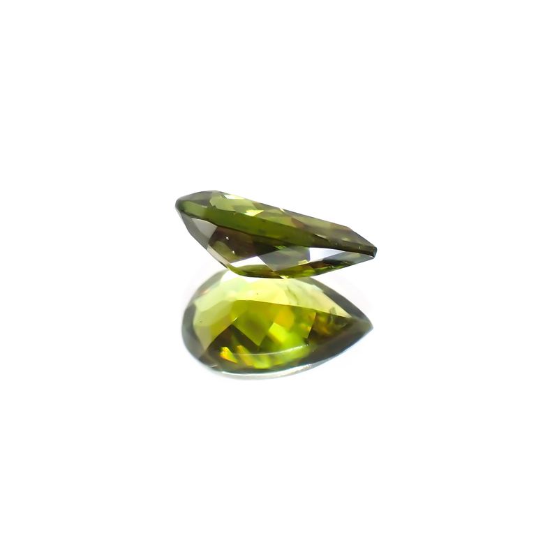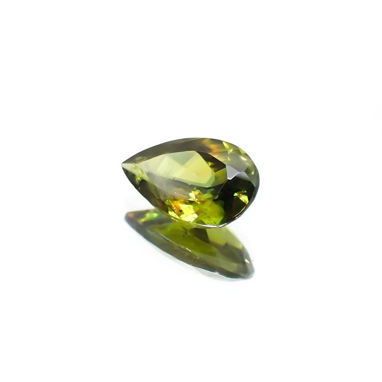 スフェーンは特に、このファイアが強く現れる宝石として知られています。光の分散率がダイヤモンドよりも大きく、また複屈折も大きいため、透明度の高いスフェーンのファセットカットはダイヤモンド以上の輝きを放つのです。