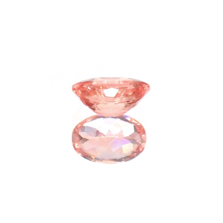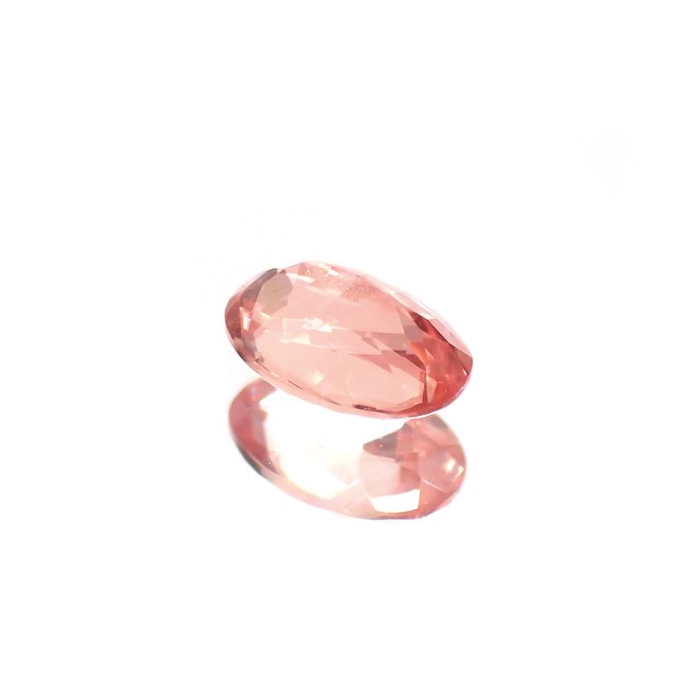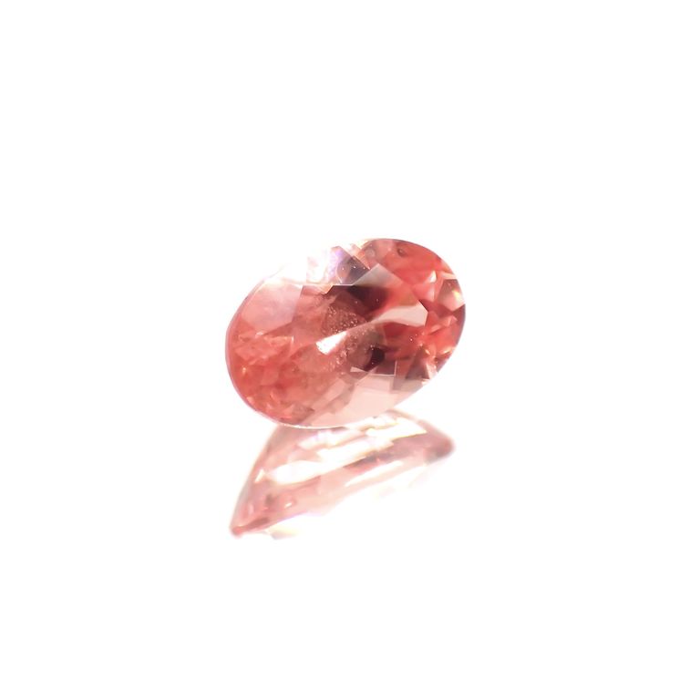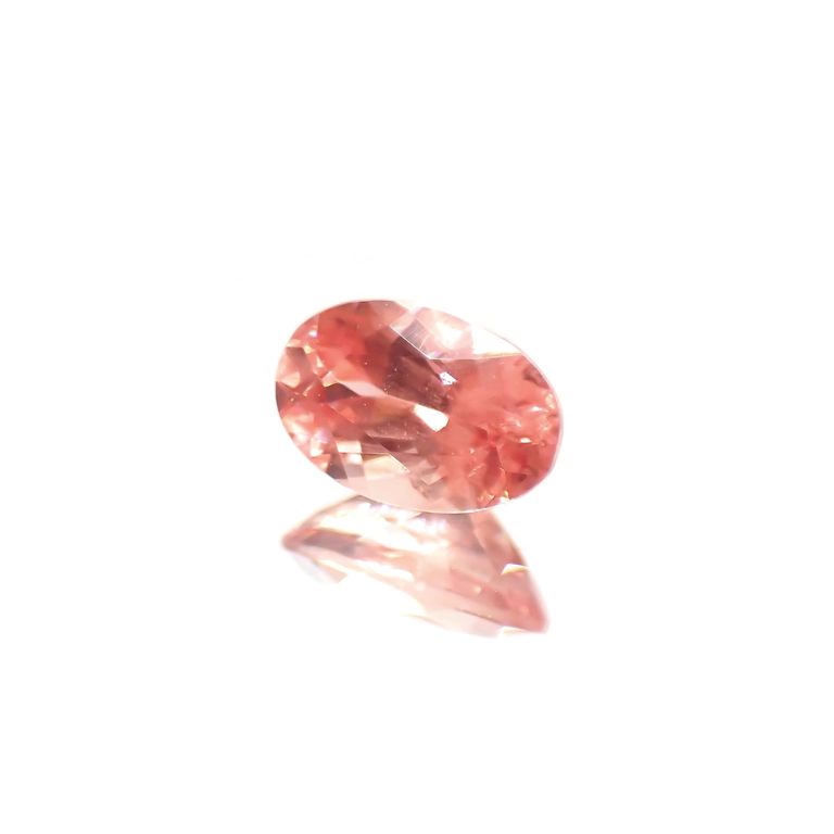 わずかにオレンジを混ぜたようなパパラチャピンクの色合いを持つ宝石です。透明度のある結晶の輝きは、かぐわしく豊潤な芳香が漂ってきそうな、まさに今咲きほころぶ瞬間の薔薇のよう。