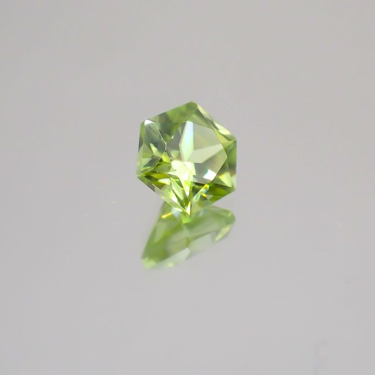 スフェーンは特に、このファイアが強く現れる宝石として知られています。光の分散率がダイヤモンドよりも大きく、また複屈折も大きいため、透明度の高いスフェーンのファセットカットはダイヤモンド以上の輝きを放つのです。