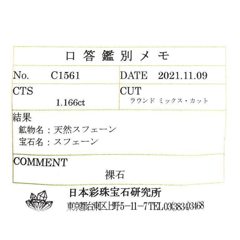 ①識別済:ソーティングや鑑別書などの証明書の発行はありませんが、鑑別機関にて宝石名の名称が相違のないことを確認済みである商品