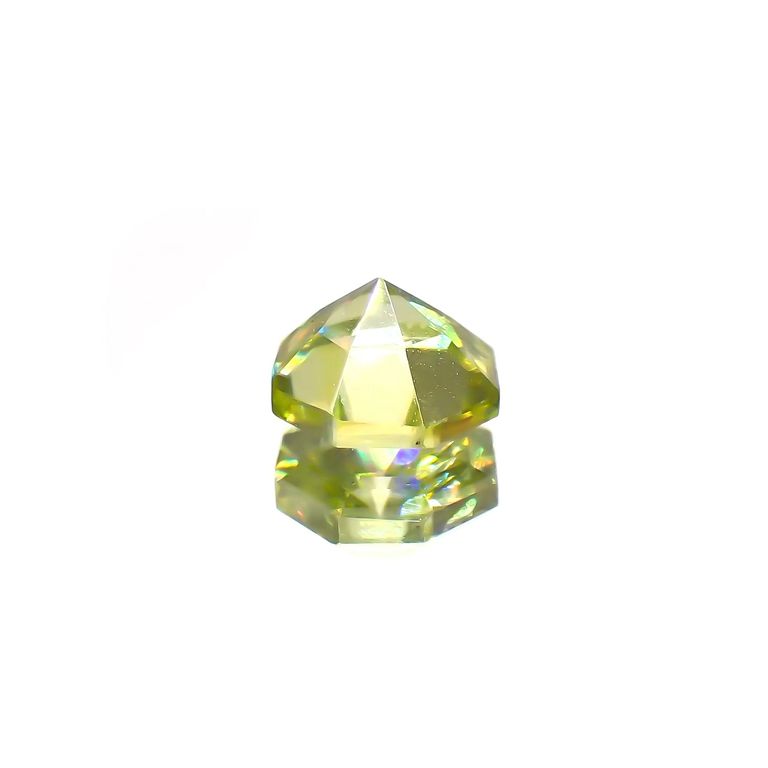 スフェーンは特に、このファイアが強く現れる宝石として知られています。光の分散率がダイヤモンドよりも大きく、また複屈折も大きいため、透明度の高いスフェーンのファセットカットはダイヤモンド以上の輝きを放つのです。