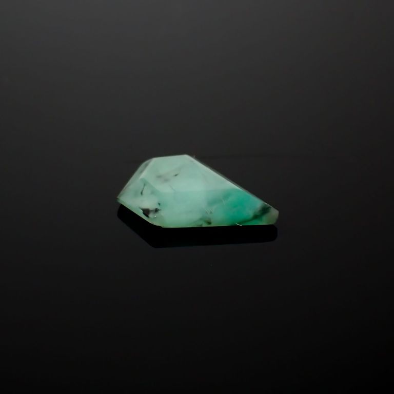 この弱点を補うために生み出されたのがエメラルドカット。六角柱の原石の形状を活かして歩留まりを高め、できる限り宝石に圧力を加えずに美しく仕上げるためのカットが考案されました。