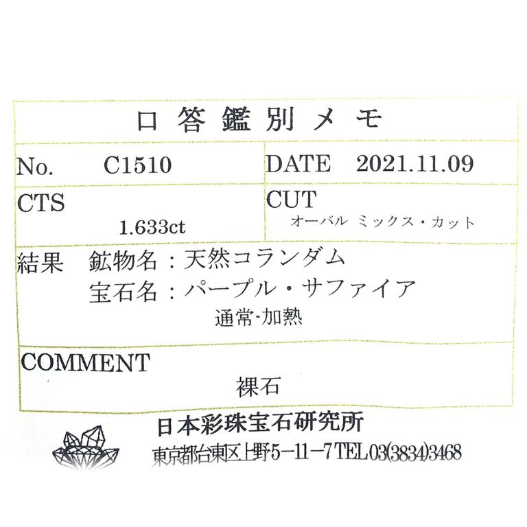 鑑別書がついているものは非加熱検査済み、鑑別所なしのもので非加熱の文字を付けているものは、仕入れ元情報によるものです。
