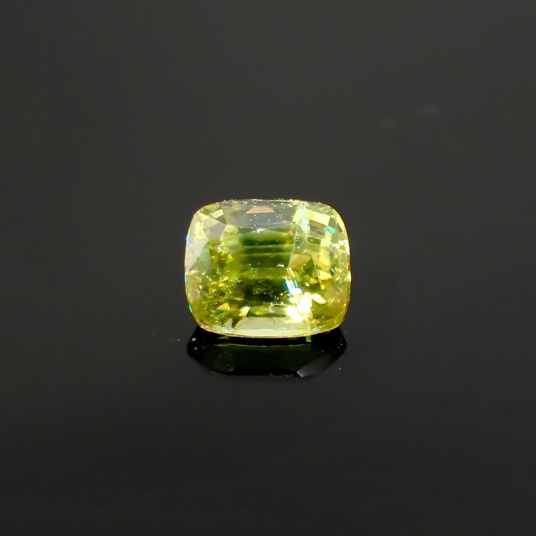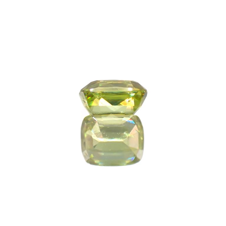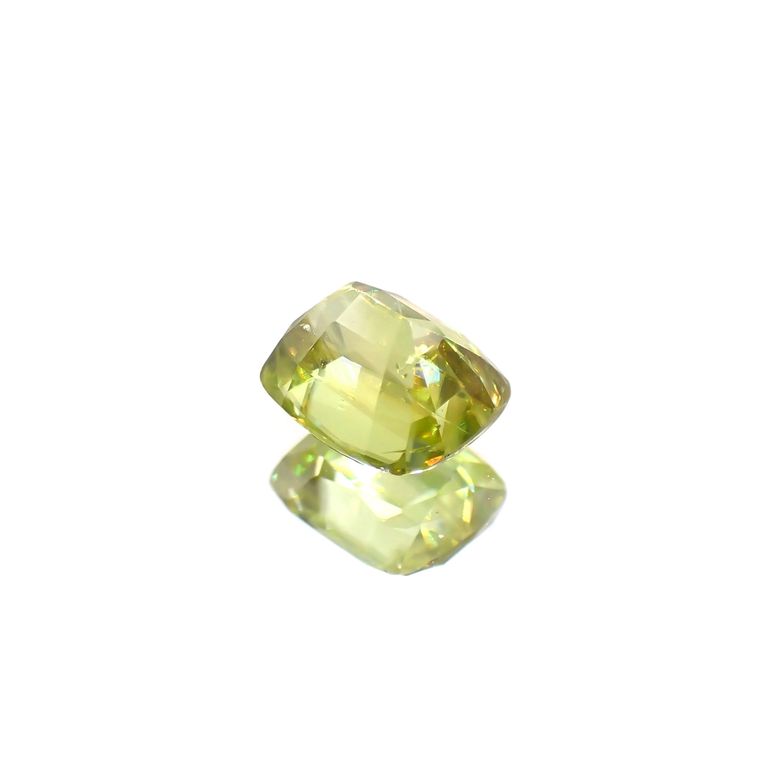 スフェーンは特に、このファイアが強く現れる宝石として知られています。光の分散率がダイヤモンドよりも大きく、また複屈折も大きいため、透明度の高いスフェーンのファセットカットはダイヤモンド以上の輝きを放つのです。