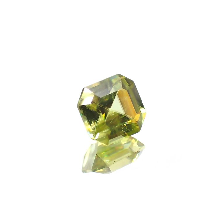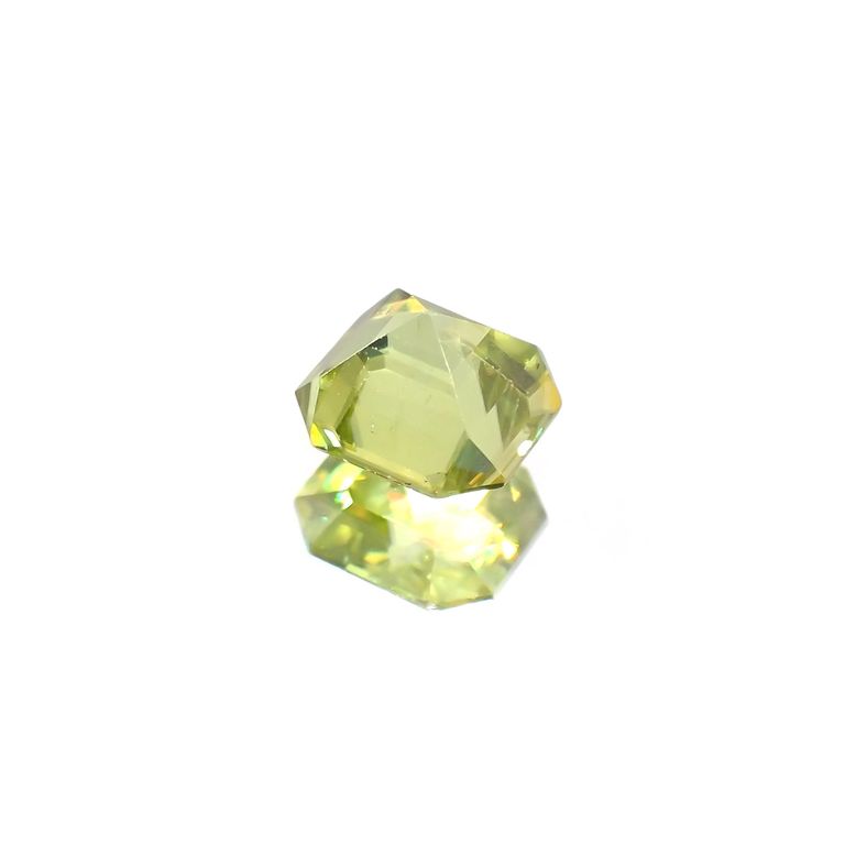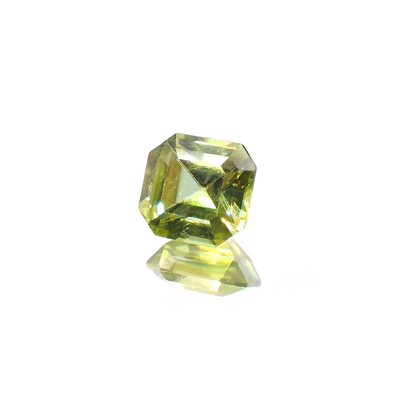 スフェーンは特に、このファイアが強く現れる宝石として知られています。光の分散率がダイヤモンドよりも大きく、また複屈折も大きいため、透明度の高いスフェーンのファセットカットはダイヤモンド以上の輝きを放つのです。