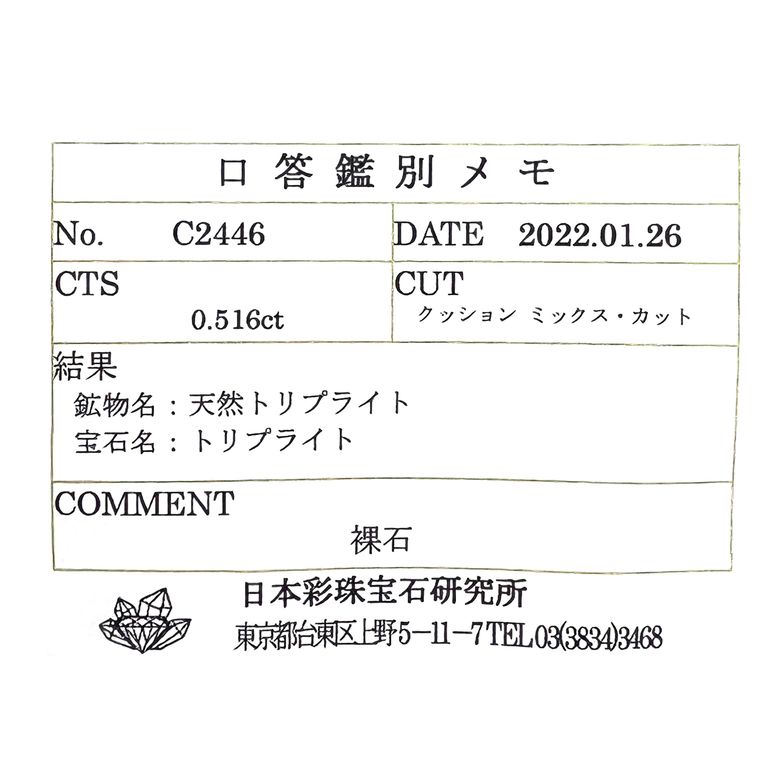 トリプライト(宝石名トリプライト) ブラジル産 0.516ct ソ付(彩珠)[210812528]5.4×4.2mm前後