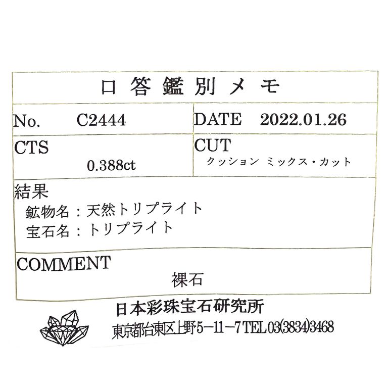 トリプライト(宝石名トリプライト) ブラジル産 0.388ct ソ付(彩珠)[210812529]4.1×4.1mm前後
