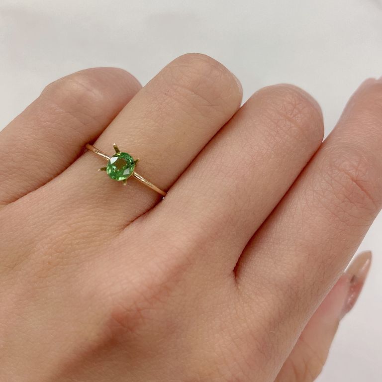 産出地に因んでメレラニミントガーネットとも呼ばれています。名前の通りミントグリーンの明るい色彩が特徴で、爽やかなカラーです。