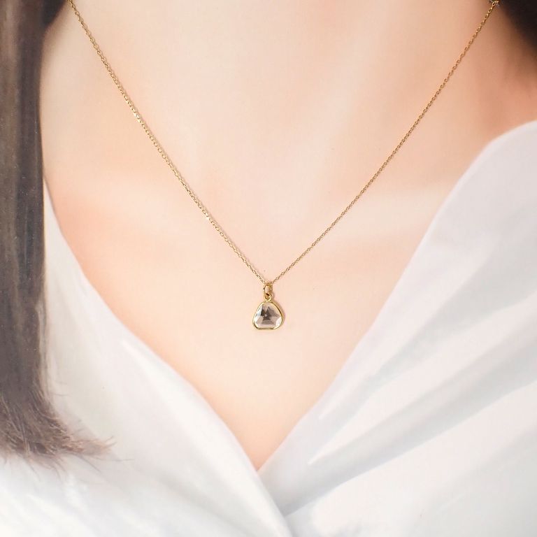 ダイヤモンドの持つ本来の上品な光沢感を大きな面積で贅沢に楽しめるのがこのスライスカットのダイヤモンドです。