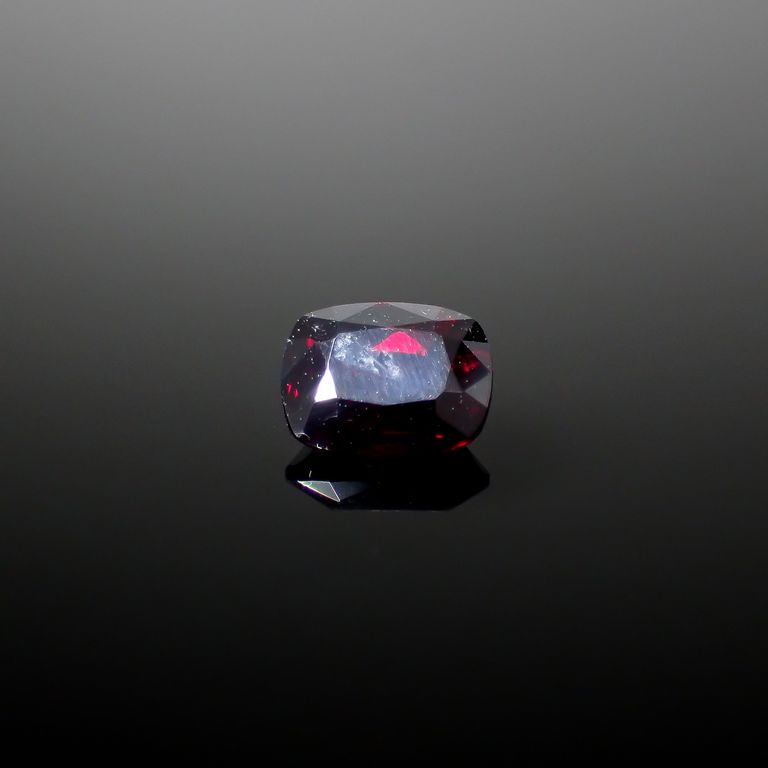 色の濃いガーネットのような、ブラウンレッドから黒系の非常に深いカラーをもつ宝石で、和名を赤銅鉱(せきどうこう)といいます。