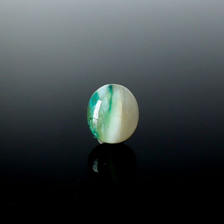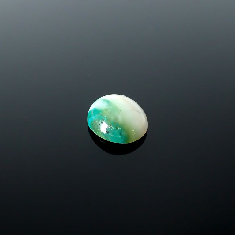 同じ鉱山からクリソコラやヘマタイトも同時に産出することからもわかるとおり、複数の鉱物を含んだ鉱脈で、ブルーオパールにもその片鱗がうかがえます。青一色のものから、鉄を含んで緑色に発色したもの、さらに黄色や白い部分などもあり、絶景が浮かぶペルー産のブルーオパールまさに絵画オパールと呼びたくなる美しさです。